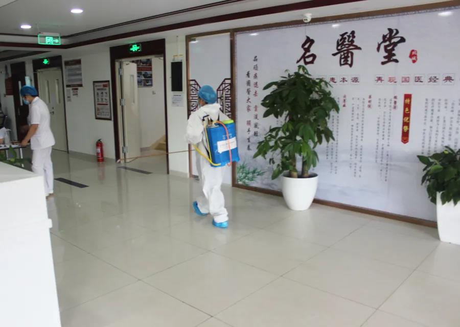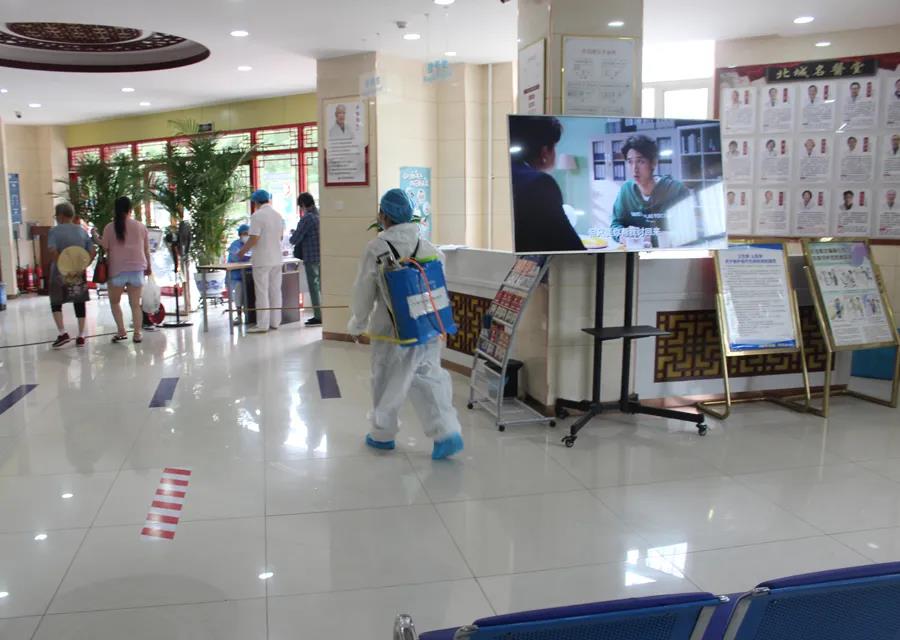 为了守护老百姓的健康,建立层层防线,为防止疫情传播,定时对医院各区域进行消毒,确保消杀无死角。
